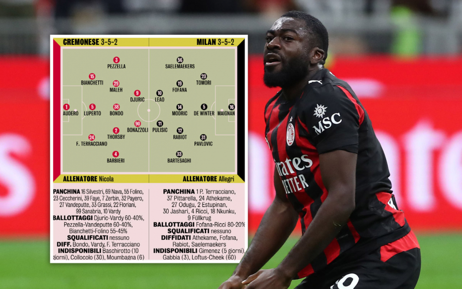 Наставник «Милана» Макс Аллегри планирует внести два изменения в стартовый состав «Милана» на матч против «Кремонезе».