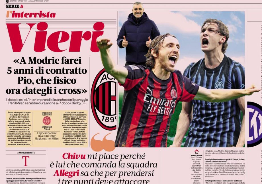 Кристиан Вьери: «Дерби – это всегда лотерея, чистый рандом. Я бы предложил Модричу пятилетний контракт»