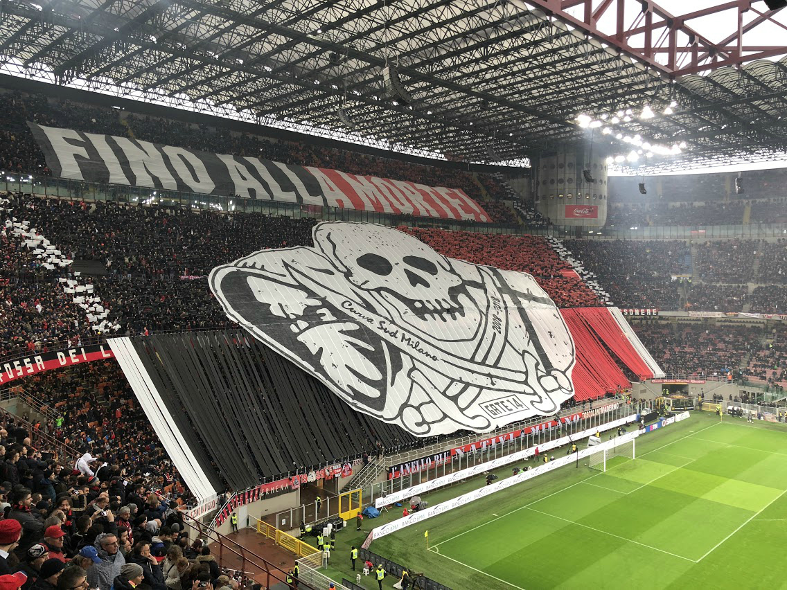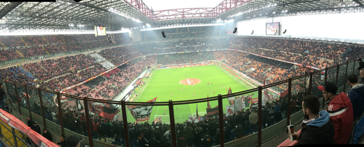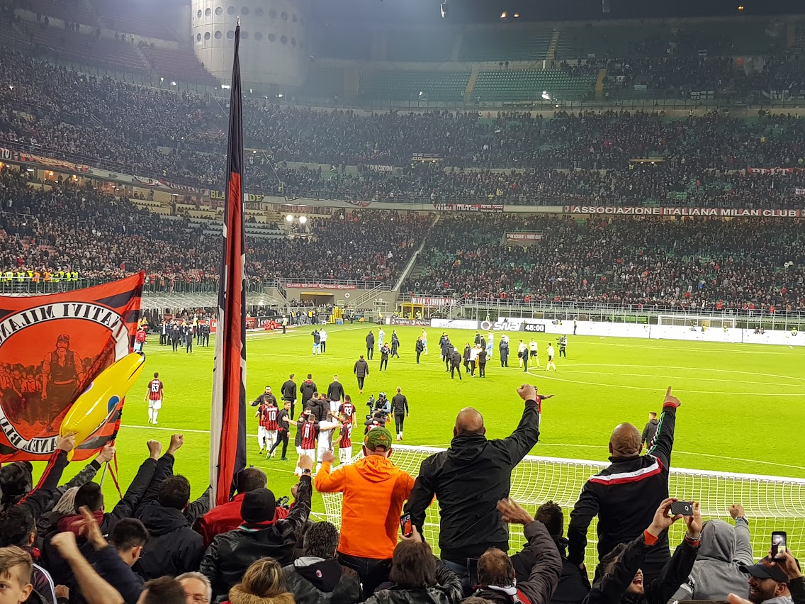 Отметить отдельно стоит разве что потрясающие ощущения от нахождения рядом с безудержной Curva Sud, где собираются самые ярые поклонники красно-чёрных. Помимо песнопений, и рукоплесканий в сочетании и кричалками в буквальном смысле слова можно прикоснуться к искусству - поддержать с обратной стороны растянутое полотнище с рисунком, которое местные болельщики готовят к таким играм с особой тщательностью.