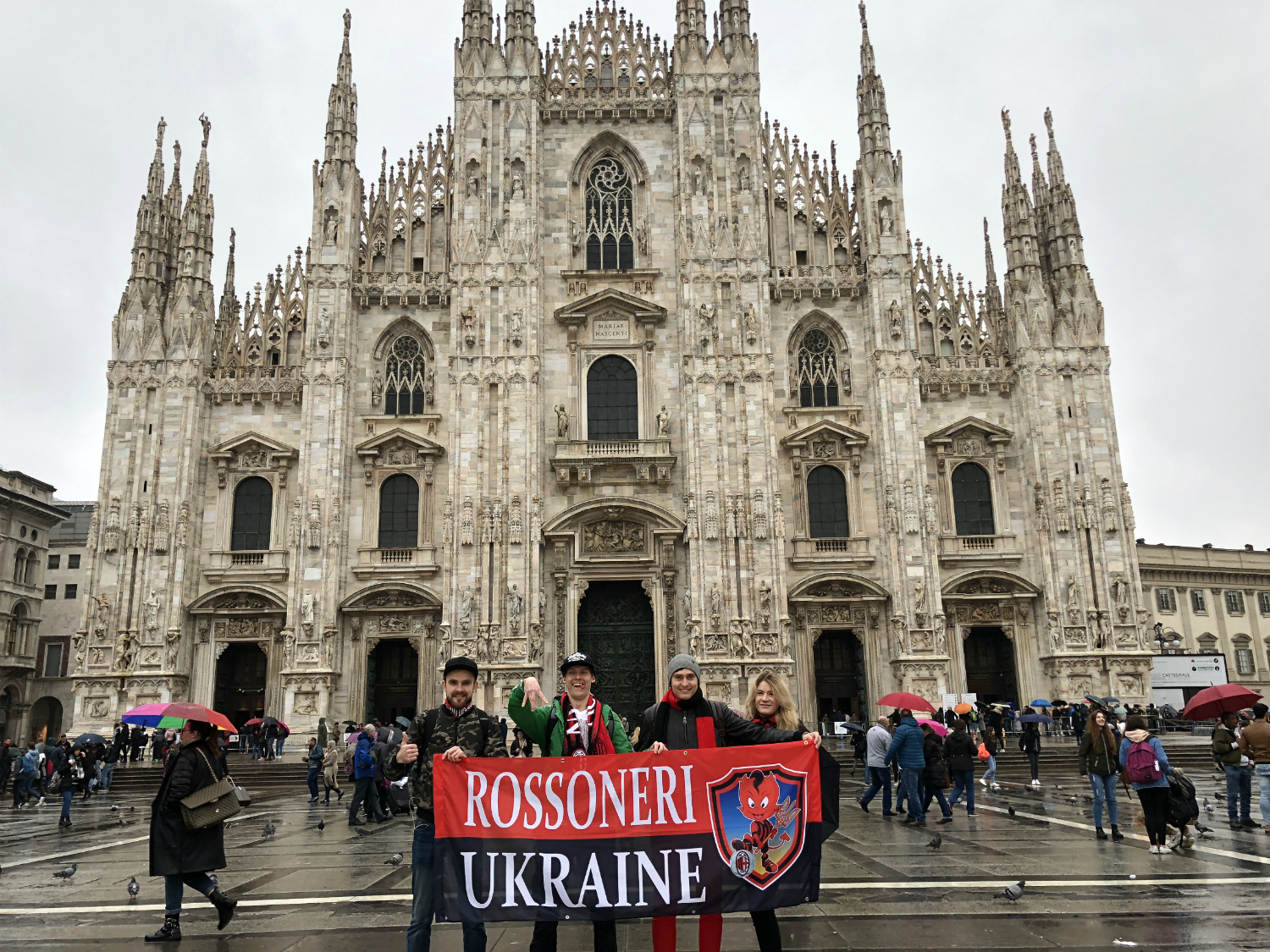День игры начался продолжением дождя, которым нас встретил накануне поздним вечером Милан. На улицах было полно как людей с зонтами, так и тех, и других по-отдельности. Это, похоже, замеченная мною ещё чуть более года назад особенность города - люди пользуются данными предметами, а потом оставляют их во вполне пригодном состоянии кому-то ещё.