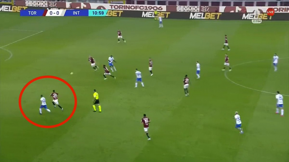 Он также обладает исключительным ускорением, что имело решающее значение для отхода назад при неудачном прессинге «Торино».
