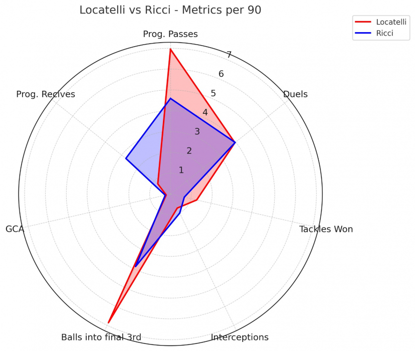В то время как Локателли лучше двигается и отлично играет в финальной трети, у Риччи больше перехватов. Другими словами, Мануэль немного более креативен, а Самуэле – более полезен в защите.