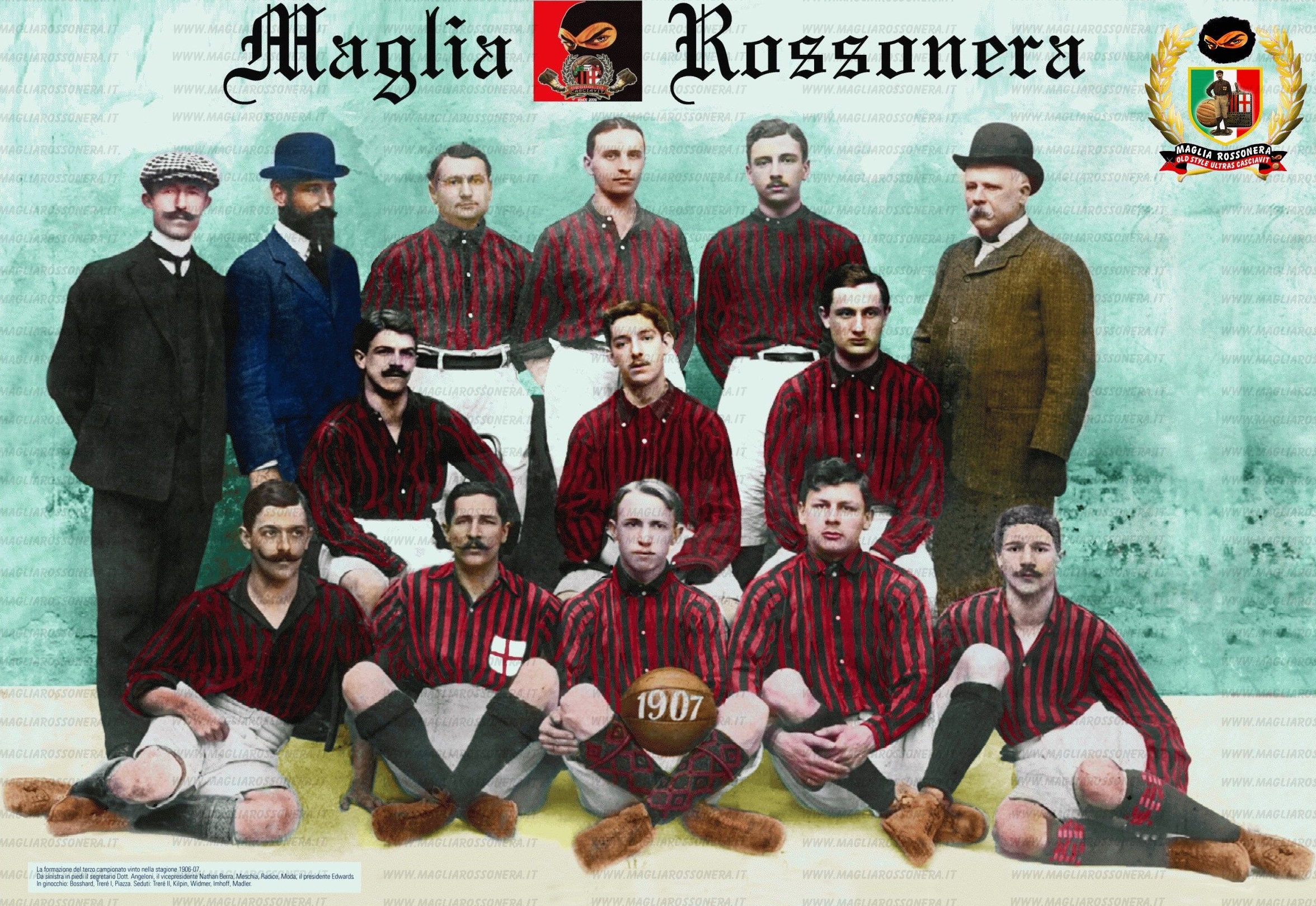 Однако, главным бомбардиром был швейцарский форвард Ханс Вальтер Имхофф, который забил в лиге 5 мячей. Его земляк и партнер по атаки Эрнест Видмер забил лишь один гол, но все равно был очень полезен на поле. Также нельзя не отметить Иоганна Фердинанда Медлера – первого немца в составе «россонери». Уроженец Штутгарта числился ещё в составе команды образца 1902 года, но, будучи занятным человеком, был вынужден прервать свою футбольную деятельность, зато потом триумфально вернулся и в сезоне 1906-1907 сыграл немаловажную роль в завоевание титула. В частности, он трижды забил в ворота «Андреа Дории».