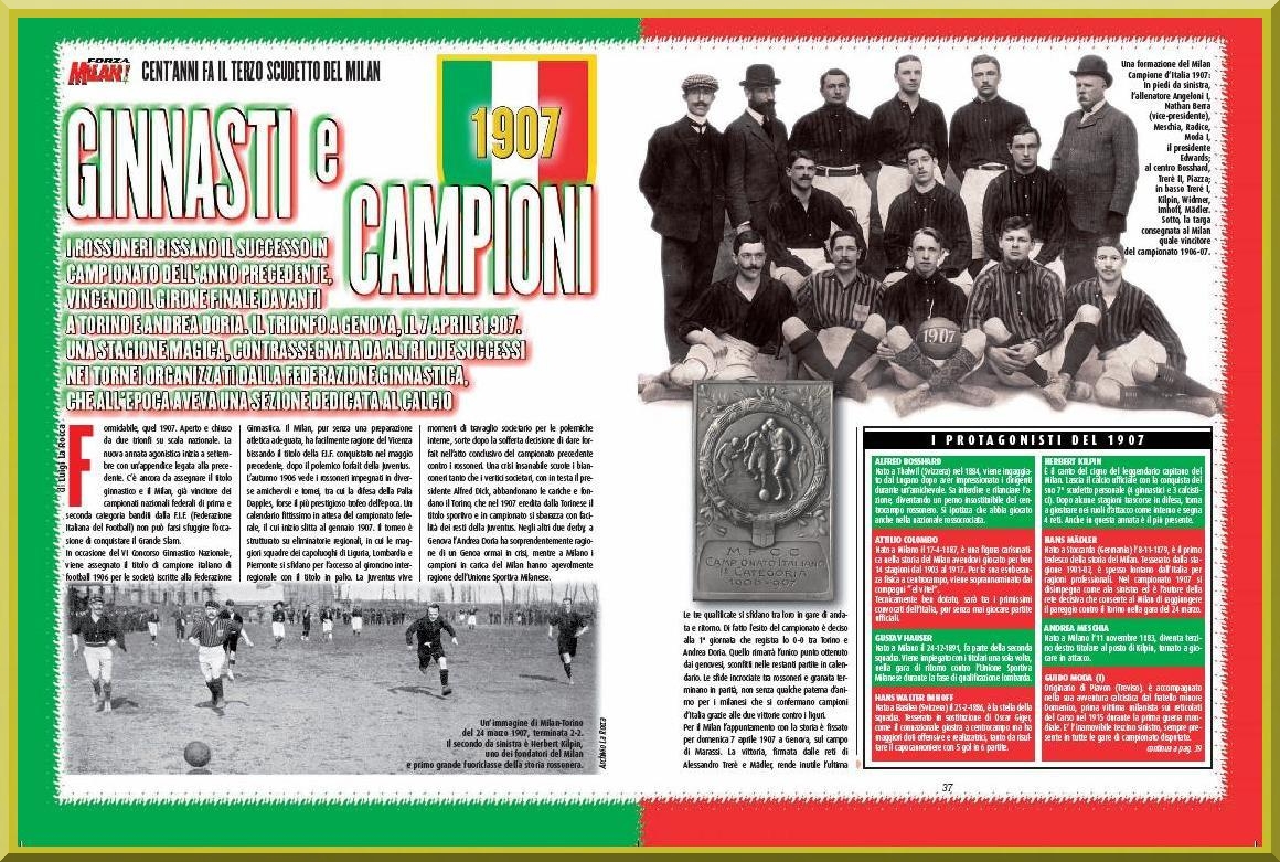 На дворе был 1907 год… футбольная аудитория в Милане, Генуе и Торино составляла всего, в лучшем случае, несколько сотен человек. Все строилось исключительно на энтузиазме, клубы существовали за счет самофинансирования, зачастую даже сами футболисты были вынуждены платить, чтобы играть. Доход команды за «важные матчи» составлял не более 200-250 лир. Входной билет на стадион (или подобие стадиона) стоил копейки. Однако, несмотря на все экономические трудности, неопытность в плане организации матчей и турниров, футбол в Италии продолжает развиваться.
