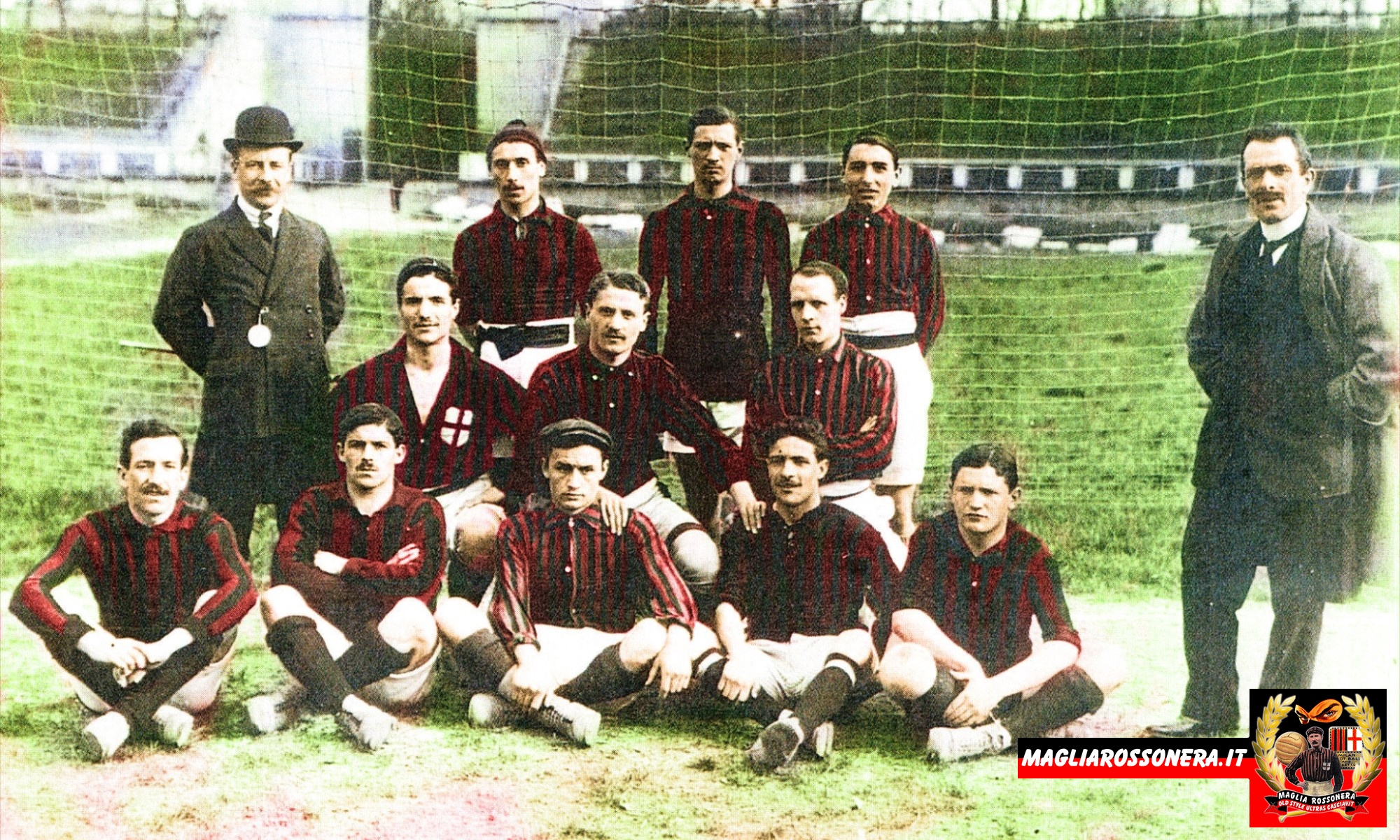 Состав "Милана" в 1910 году: Сала, Барбьери, Де Векки (верхний ряд, слева направо), Аттило Коломбо, Скариони, Димент (троица в центре), Каррер, Боссхард, Чевенини l, Лана, Мариани (снизу).