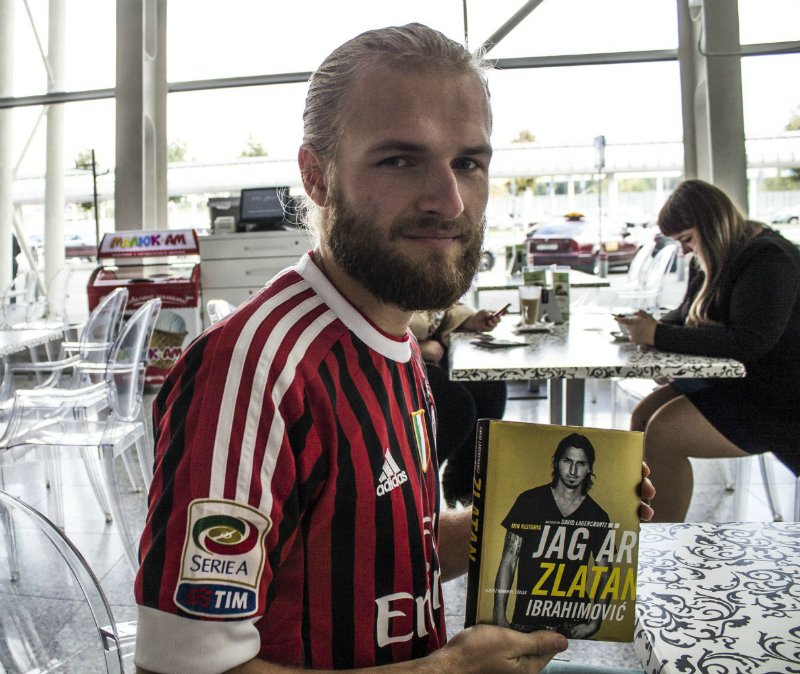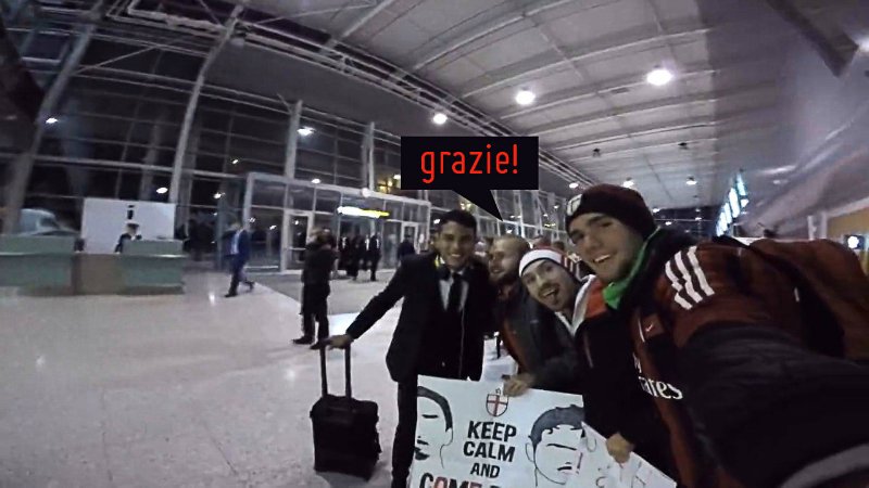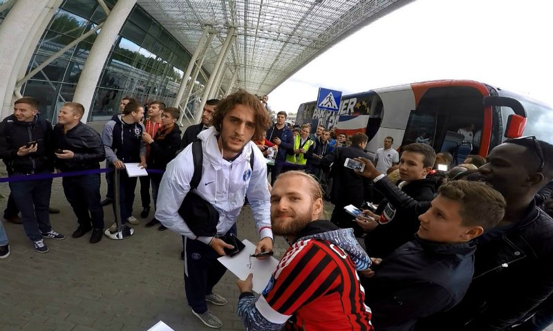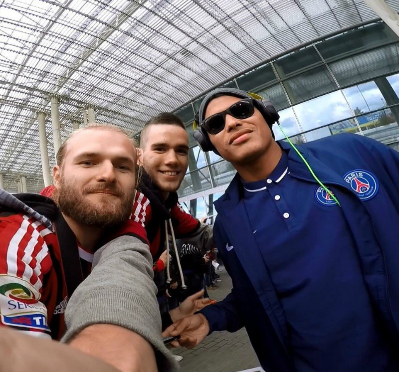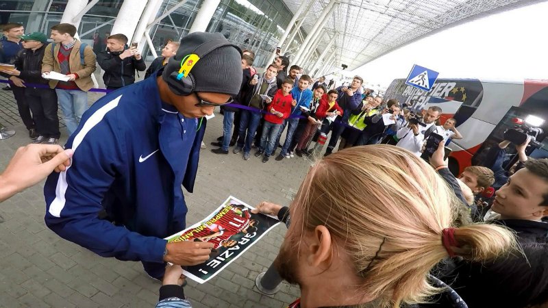 Прилетели. Выходят. Их много, и много звезд, но у нас цель одна. Точнее, две. Ибра идет по левой стороне и в нашу сторону даже не смотрит. Тьяго подходит конкретно ко мне и ставит подпись на фото. Фоткаемся. Ура.