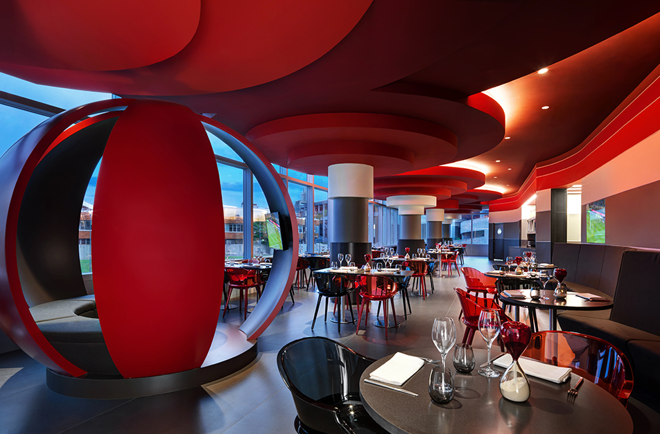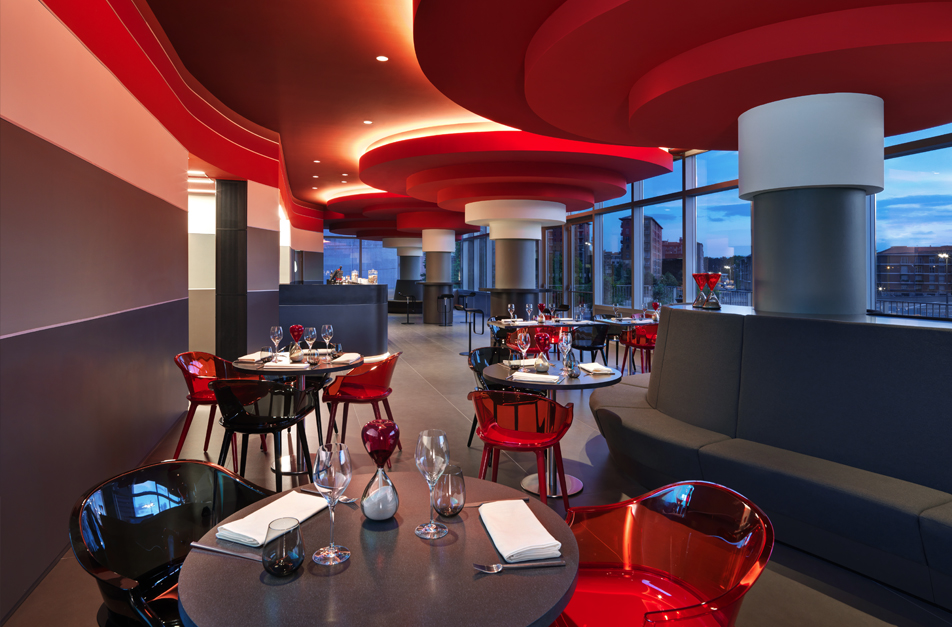 Ресторан площадью 450 квадратных метров открыт с 8-ми до 24-х часов и предлагает полный спектр услуг: от завтрака до ужина, удовлетворяющих любой вкус. Благодаря эксклюзивному сервису, разработанному знаменитой кухней одноименного спортивного центра, где тренируется команда, качество продукции идеально сочетается с концепцией здорового питания. Многочисленные экраны, размещенные внутри помещения, предлагают просмотр домашних и выездных матчей «Милана», а также лучших международных спортивных событий.