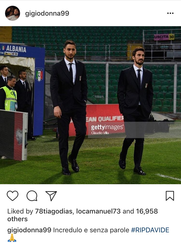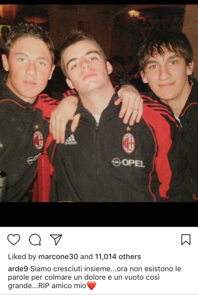 Воспитанник «Милана» и нападающий «Авеллино» Маттео Ардеманьи: «Мы росли вместе, а теперь не хватит никаких слов, чтобы восполнить боль и пустоту, которая так велика. Покойся с миром, мой друг».