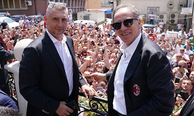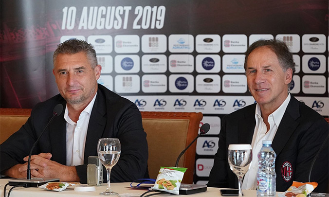 Легенды «Милана» Даниэле Массаро и Франко Барези дали пресс-конференцию перед товарищеским матчем в Косово.
