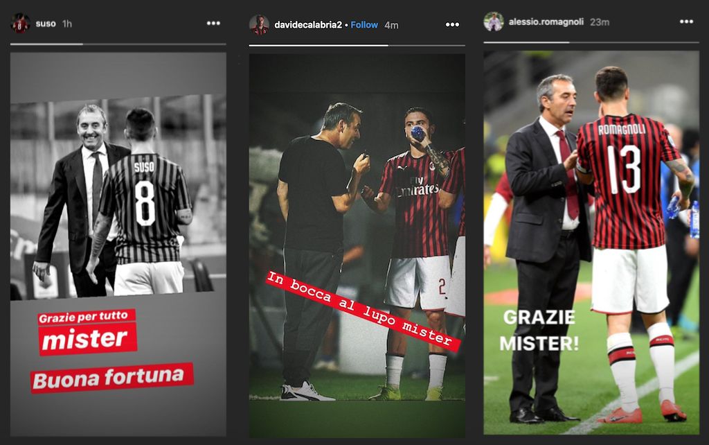Часть футболистов «Милана» поблагодарили в социальных сетях бывшего тренера за совместную работу. В их число вошли Сусо, Давиде Калабрия, Алессио Романьоли, Тео Эрнандес и Джиджо Доннарумма.