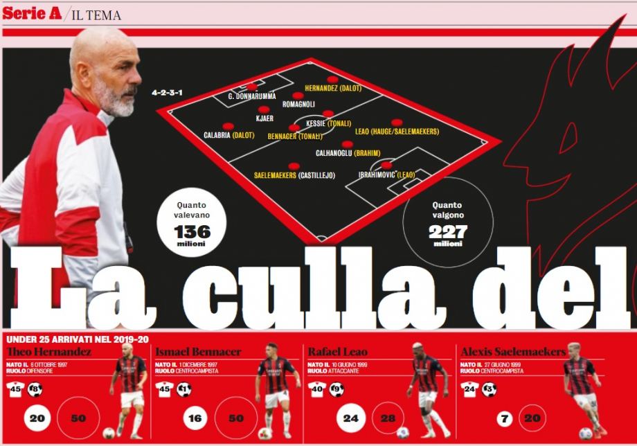 Как анализирует Gazzetta dello Sport, с начала сезона-2019/20 стоимость игроков «Милана» повысилась почти на 100 миллионов евро – со 136-ти до 227-ми.