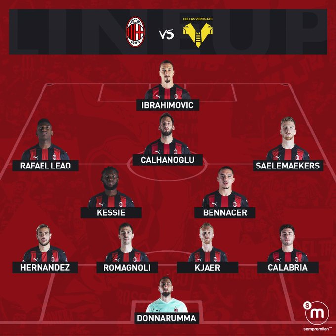 «Милан» (4-2-3-1): Д.Доннарумма – Калабрия, Кьяер, Романьоли, Эрнандес – Кессье, Беннасер – Салемакерс, Чалханоглу, Леау – Ибрагимович.