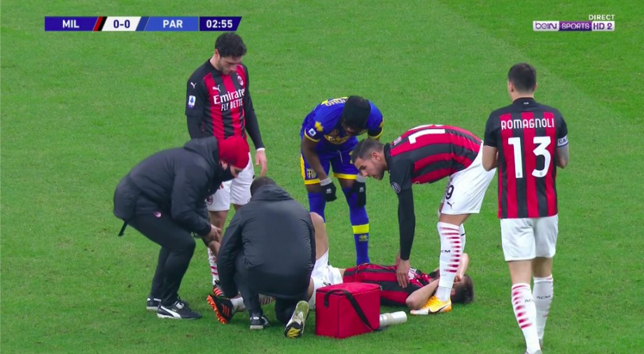 Маттео уже на 3-й минуте встречи получил растяжение левого колена, после чего покинул поле.