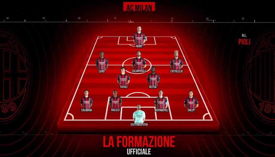 Справа в защите сыграет Диогу Далот, пару центральных защитников составят Пьер Калулу и Алессио Романьоли. В опорной зоне с первых минут появятся Франк Кессье и Сандро Тонали. Слева в полузащите будет действовать Рафаэл Леау.