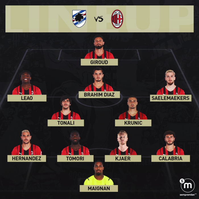 «Милан» (4-2-3-1): Меньян – Калабрия, Кьяер, Томорио, Эрнандес – Беннасер, Тонали – Салемакерс, Диас, Леау – Жиру.