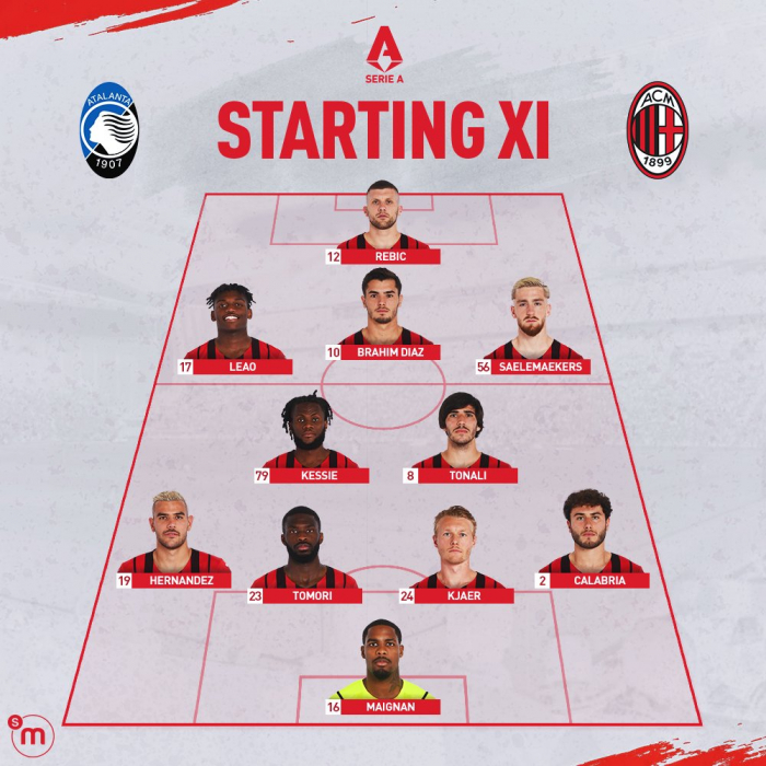 «Милан» (4-2-3-1): Меньян – Калабрия, Кьяер, Томори, Эрнандес - Тонали, Кессье - Салемакерс, Диас, Леау - Ребич.