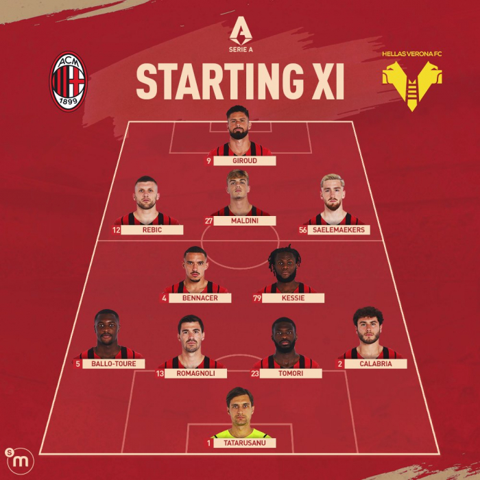 «Милан» (4-2-3-1): Тэтэрушану – Калабрия, Томори, Романьоли, Балло-Туре – Беннасер, Кессье - Салемакерс, Д.Мальдини, Ребич - Жиру.