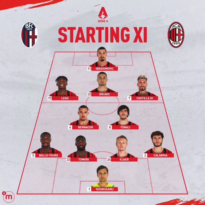 «Милан» (4-2-3-1): Тэтэрушану – Калабрия, Кьяер, Томори, Балло-Туре – Беннасер, Тонали - Кастильехо, Крунич, Леау - Ибрагимович.