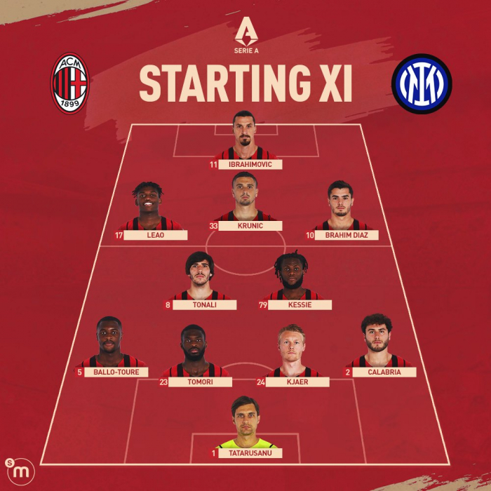 «Милан» (4-2-3-1): Тэтэрушану – Калабрия, Кьяер, Томори, Балло-Туре – Кессье, Тонали – Диас, Крунич, Леау - Ибрагимович.