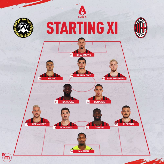 «Удинезе» — «Милан»: Бакайоко и Беннасер сыграют с первых минут