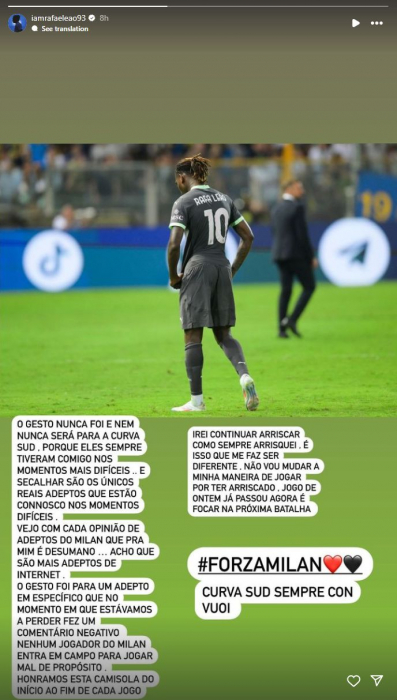 Леау прокомментировал стычку с фанатом: «Ни один игрок «Милана» не выходит на поле, чтобы намеренно сыграть плохо»