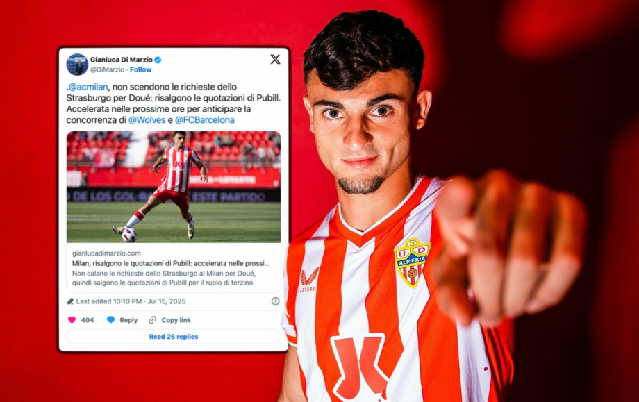 Sky уверяет, что «россонери» интересуются Гелой Дуэ, но «Страсбург» продолжает требовать 25 миллионов евро, поэтому шансы на подписание Марка Пубиля растут. Защитник «Альмерии» оценивается в 15 миллионов, и «Милан» может попытаться заключить сделку уже сегодня, 16 июля, чтобы обойти конкурентов из «Вулверхэмптона» и «Барселоны».