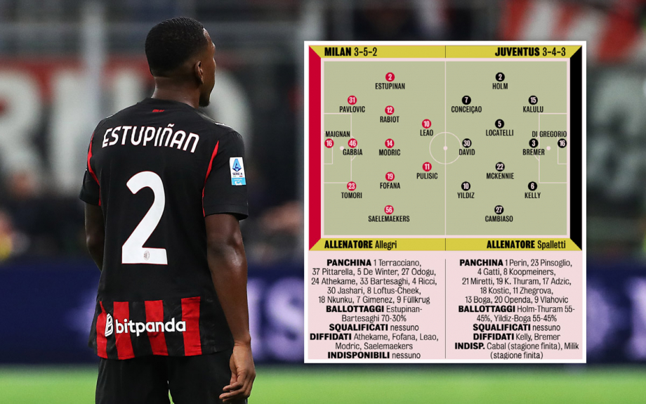 Сегодня вечером «Милан» сойдется в очном противостоянии с «Ювентусом». Согласно последним сообщениям, Первис Эступиньян должен получить место на левом фланге обороны.