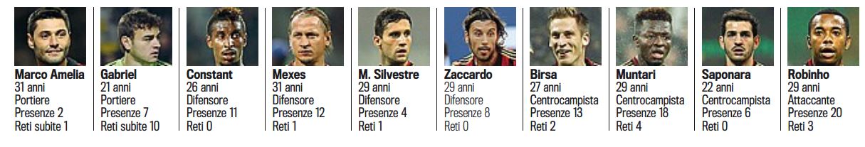 - Марко Амелия; Габриэль; Мексес; Сильвестре; Дзаккардо; Бирса; Мунтари; Сапонара; Робиньо