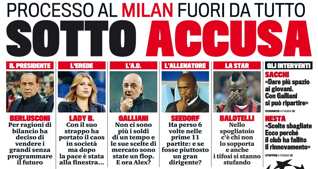 Все говорят о том, что летом клуб ждет большая чистка, ГдС сегодня пробует предсказать (или указать?), какие требуются Милану движения на рынке на продажу.