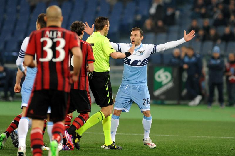 Кто бы что ни говорил, а судья имеет самое прямое влияние на результат. Не в конкретно взятом матче, а вообще. Скажу банальную вещь – если про судью после матча нечего сказать, то это хорошо. Про Маццонелли такого не скажешь. Уже на первой минуте он заставил говорить о себе. Казалось бы, обычная симуляция (это решение судьи – не мое). Что должен делать в таком случае судья? Незамедлительно ставить штрафной и показывать желтую за симуляцию. Что делает Паоло? Он бежит к упавшему Раду УСПОКАИВАТЬ его! Я понимаю – Рим, хозяева давят, выпрашивая пенальти. Но нельзя минуту решать, давать желтую или нет. Если бы Раду просто упал – это одно. Но он, как и весь «Лацио», набросились на судью, требуя поставить одиннадцатиметровый. В такой ситуации игроки «Милана» тоже занервничали – а вдруг судья поведется на уговоры? Повторюсь – мгновенная желтая для Раду наверняка бы закончила эпизод на одну-две минуты раньше.