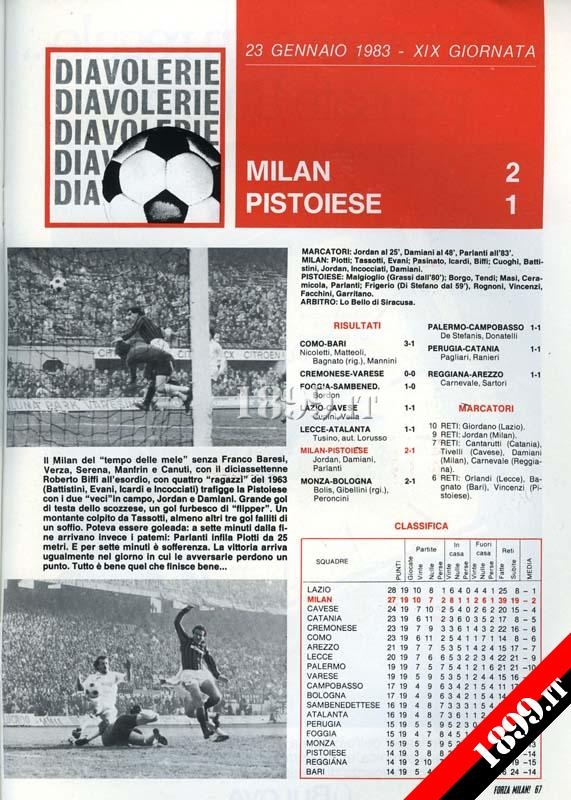 Милан 2-1 Пистойезе 23.01.1983