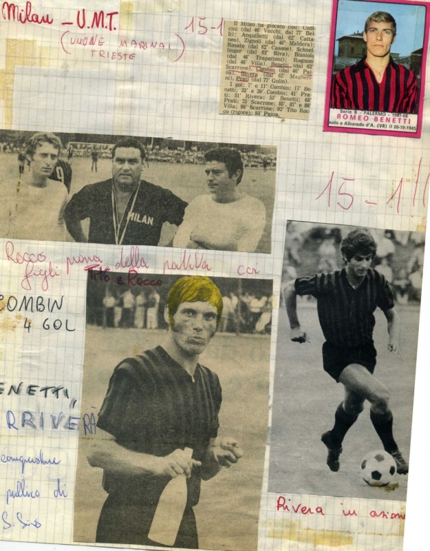 15 Голы: 7' e 11' Combin, 17' Benetti II, 32' e 39' Combin, 41' Prati, 51' Rivera, 53' Benetti II, 68' Prati, 75' Scarrone, 85', 87' e 88' Villa II, 90' Scarrone, 92' Tito Rocco, 93' Paina 1