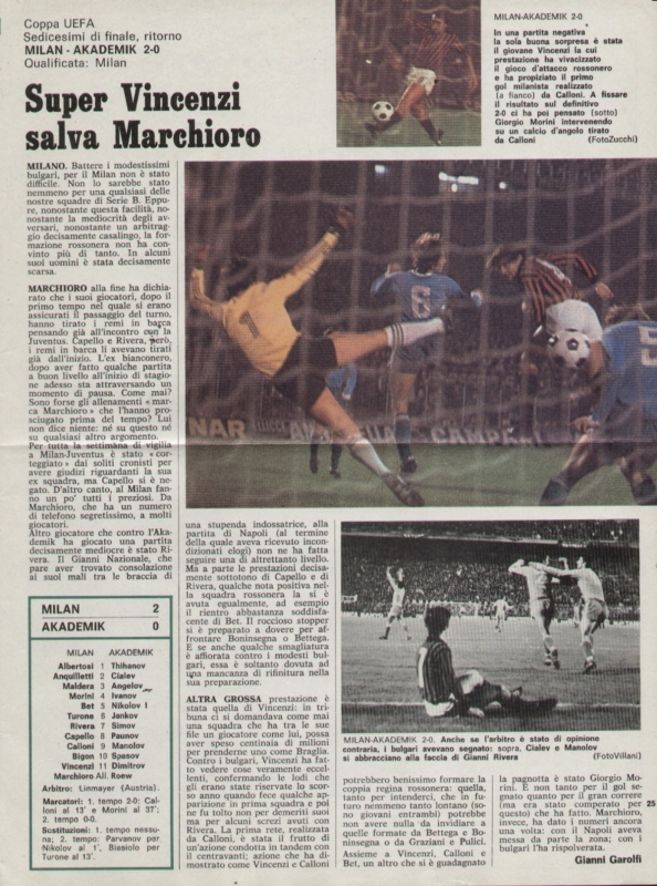 Милан 2-0 Академик София 03.11.1976