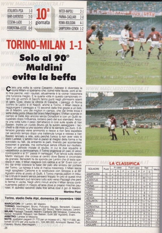 Торино 1-1 Милан 25.11.1990